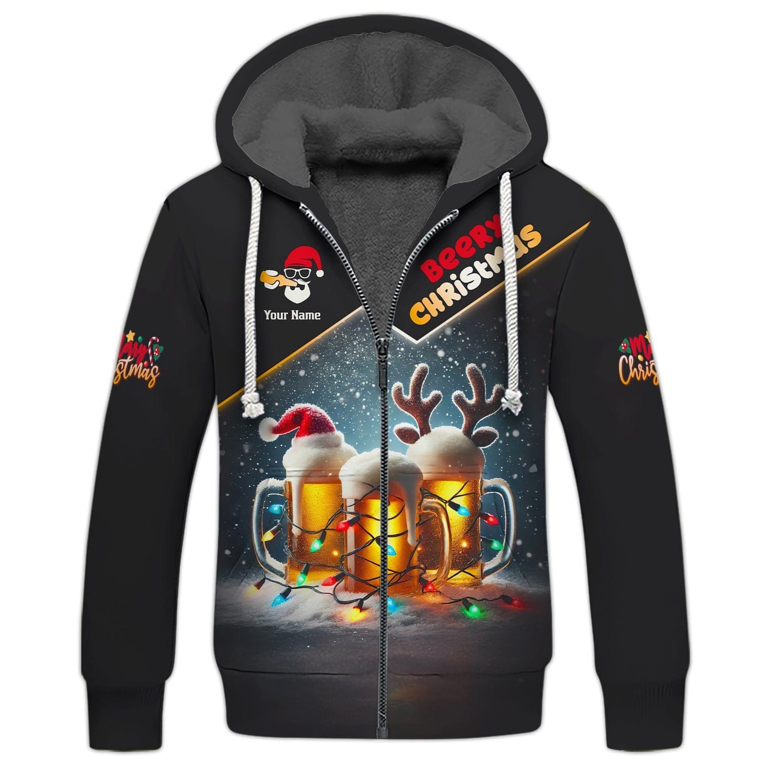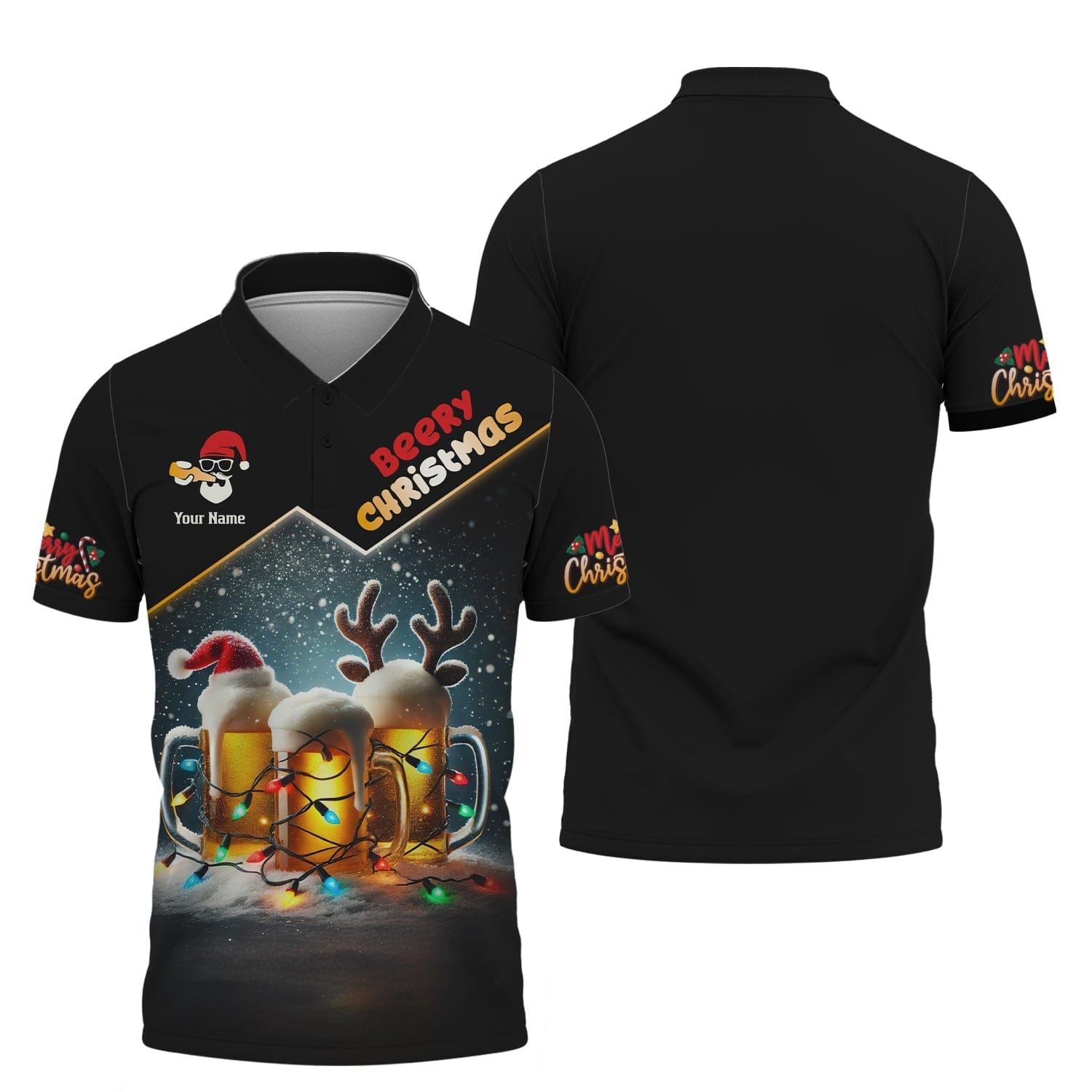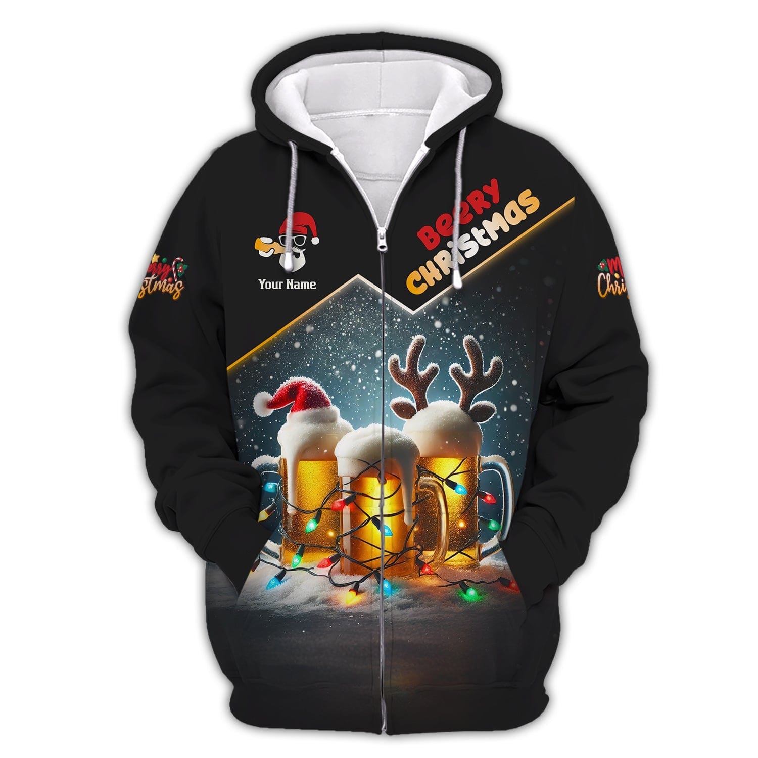 3D Full Print Beery Christmas Shirts Personalized Name Gift For Beer Lovers, All Over Printed