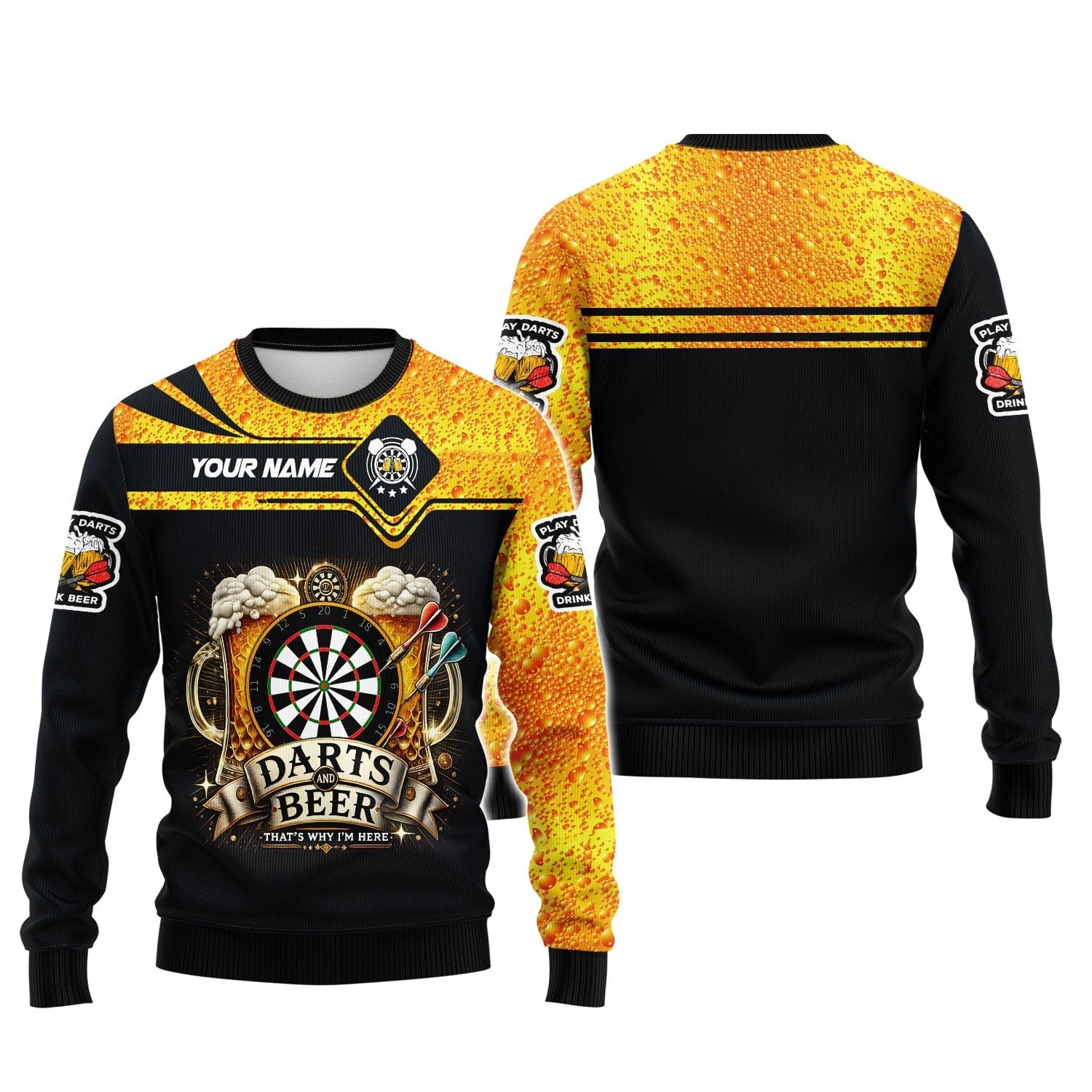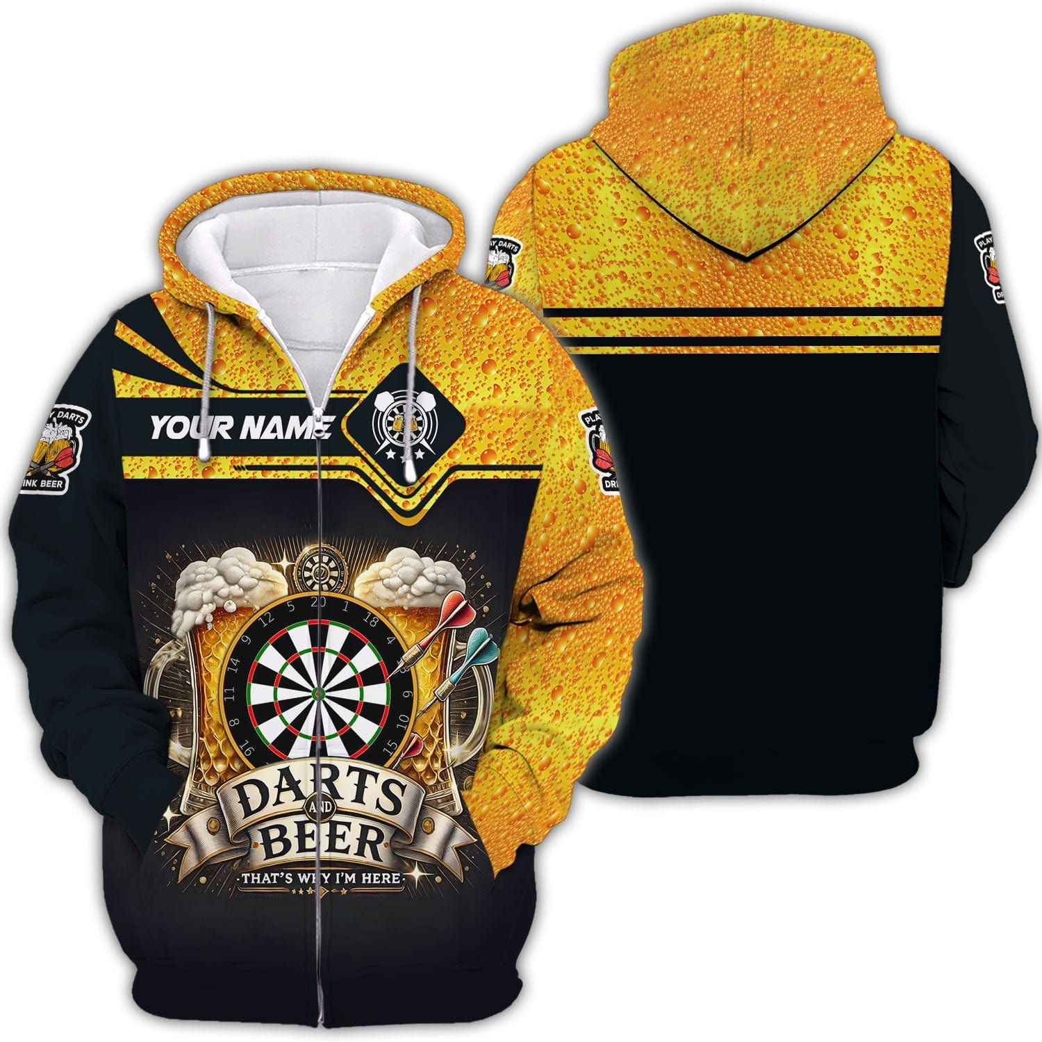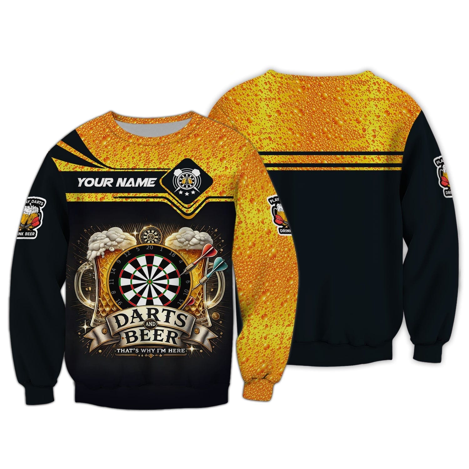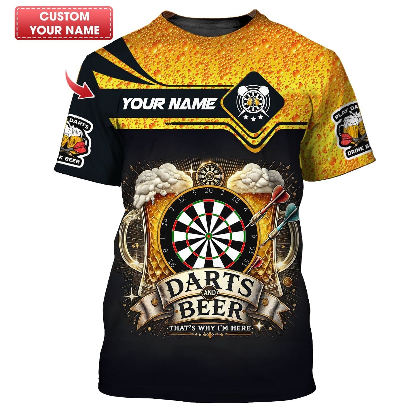 Darts And Beer That's Why I'm Here Shirt Personalized Name 3D Shirt For Beer Darts Club Lovers, All Over Printed