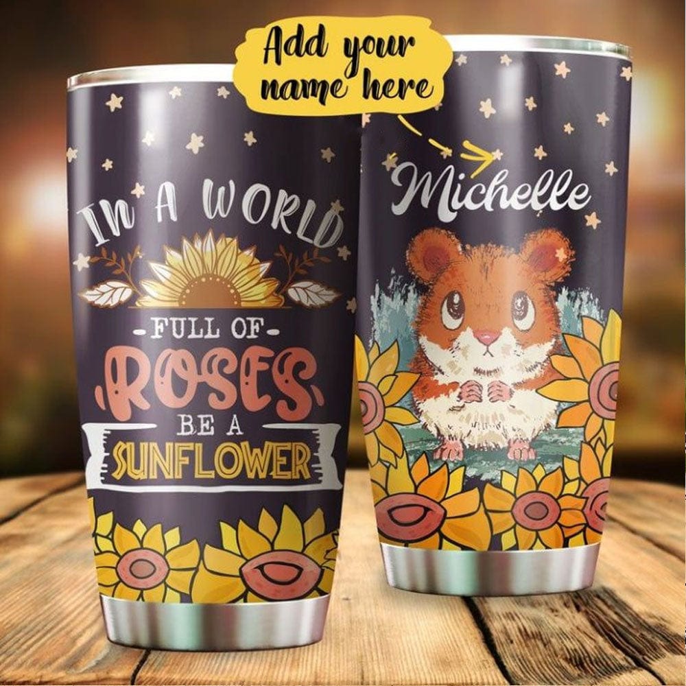Personalized In A World Of Roses Be A Sunflower Hamster Tumbler