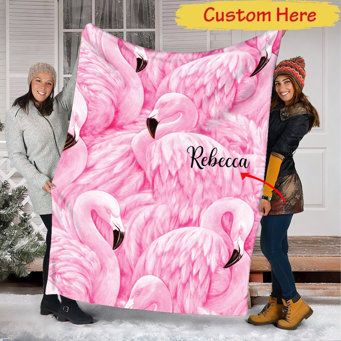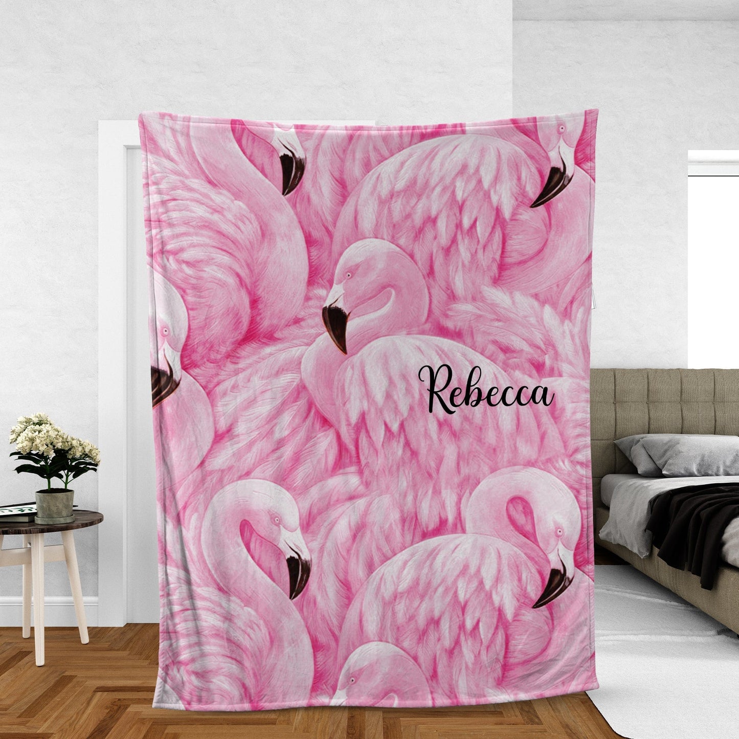Personalized Pink Flamingo Blanket Fleece & Sherpa
