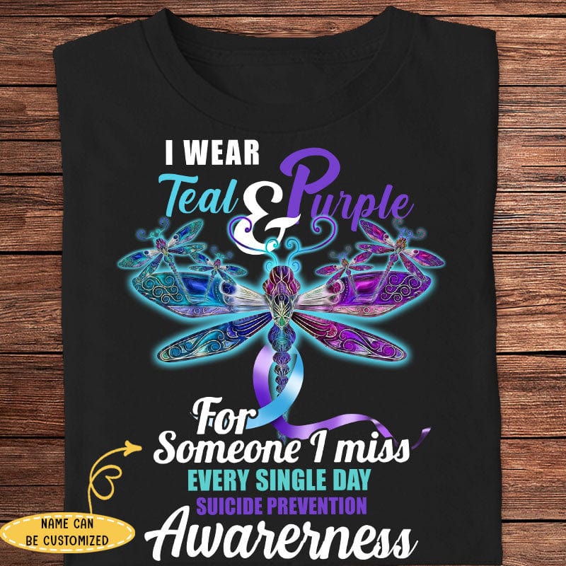 Personalized Suicide Awareness Shirts, Dragonfly I Wear Teal & Purple For Someone I Miss Every Single Day