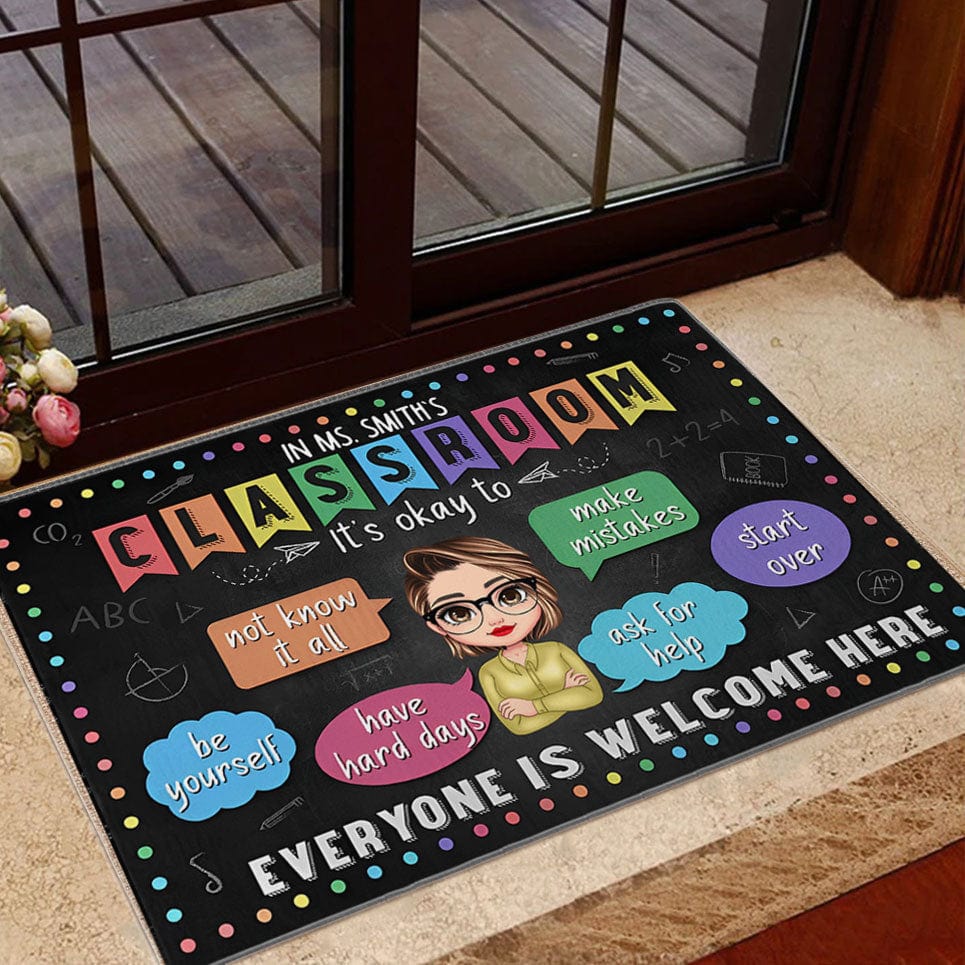 Personalized Teacher Doormat - In Ms.Teacher's Classroom , It's Okay To Everyone Is Welcome Here