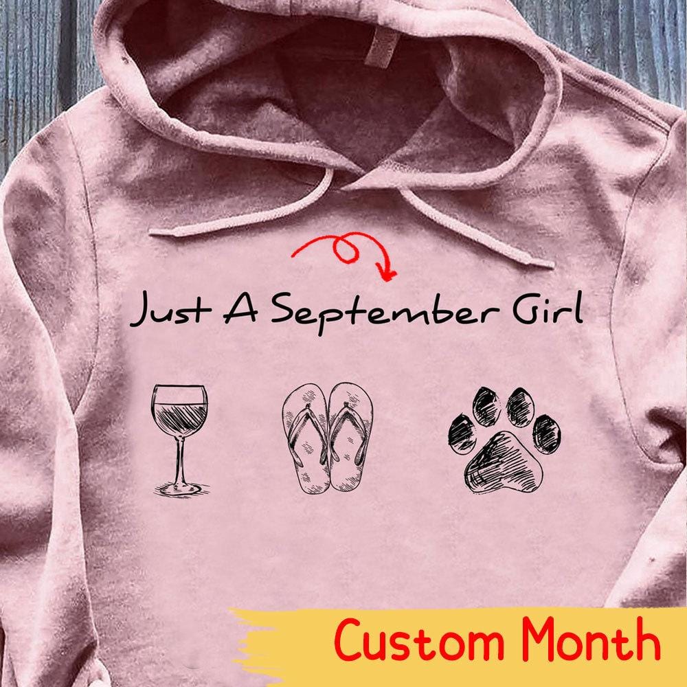 Personalized Wine Shirts Just A September Girl With Custom Month, Gift for Dog Mother Wine Lover Shirt