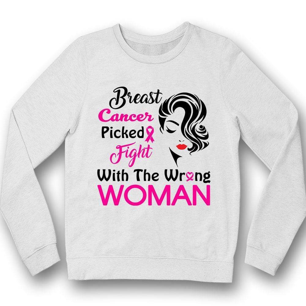 Picked Fight With The Wrong Woman Breast Cancer Hoodie, Shirt