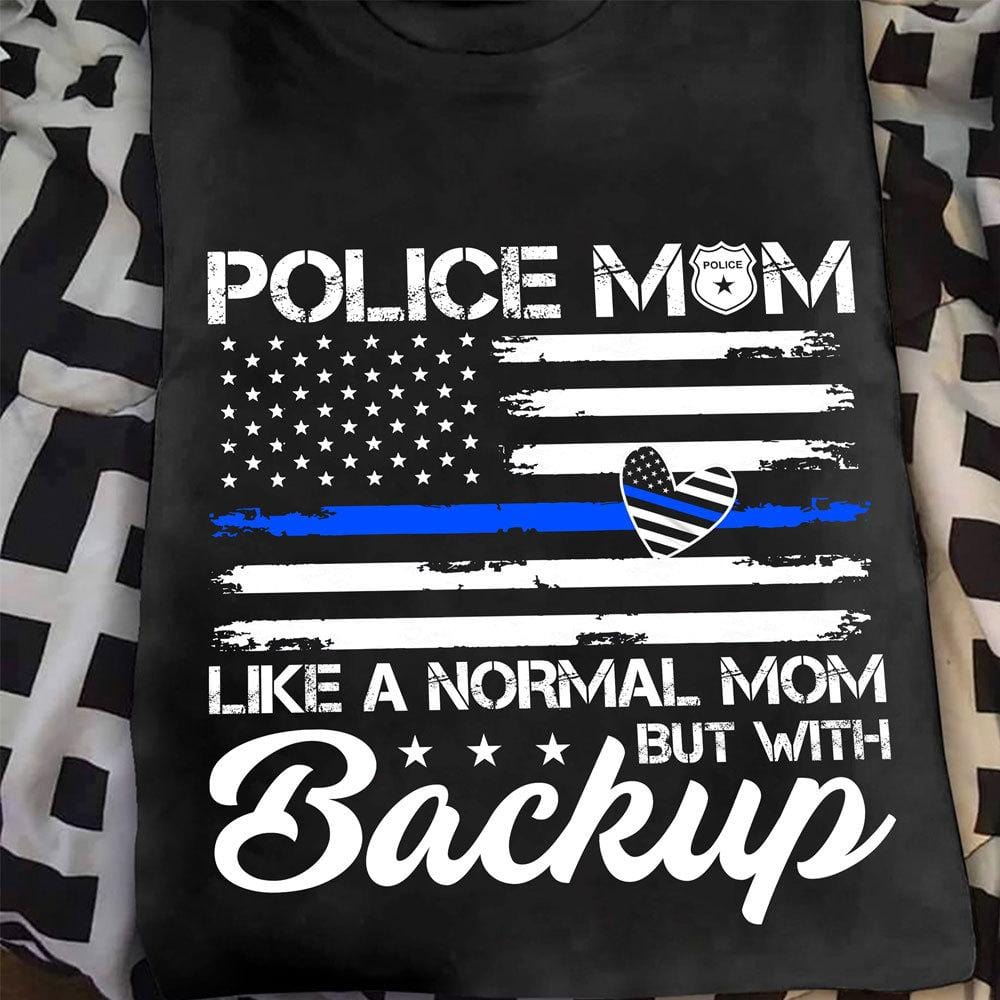 Police Mom Shirts, Police Mom Like A Normal Mom But With Backup, Thin Blue Line Shirts