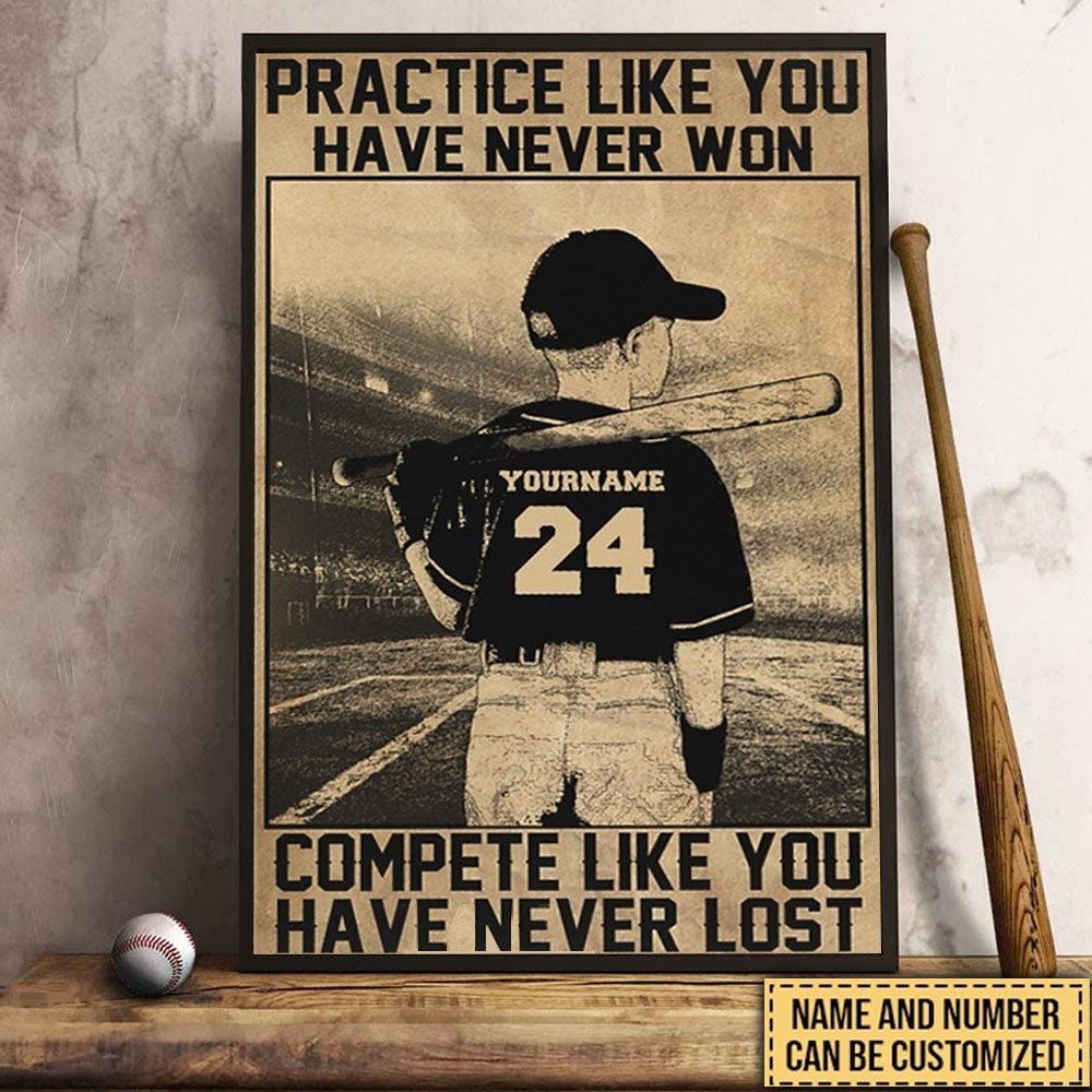 Practice Like You Have Never Won Personalized Baseball Poster, Canvas