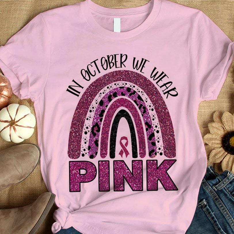 Rainbow In October We Wear Pink Breast Cancer Awareness Month Shirts