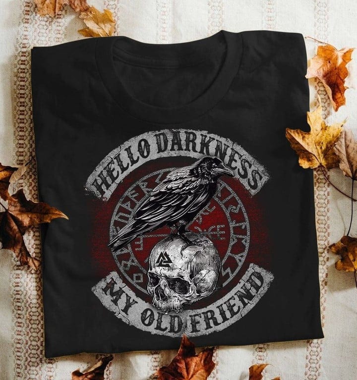 Viking Raven Skull Hello Darkness My Old Friend Shirt