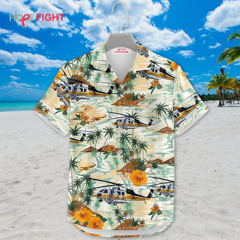 Rescue Helicopter Hawaiian Shirt - LA County Fire & Tropical Desert Design