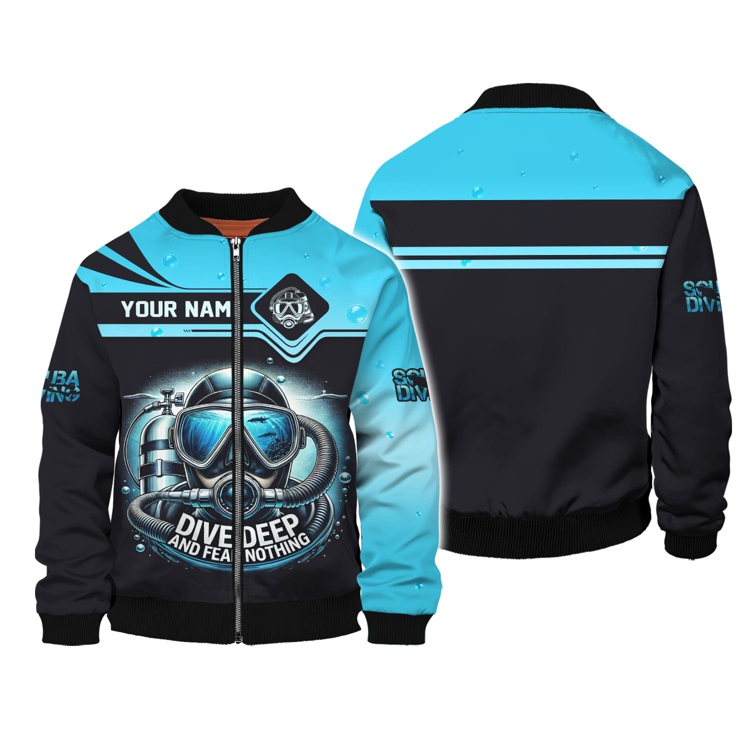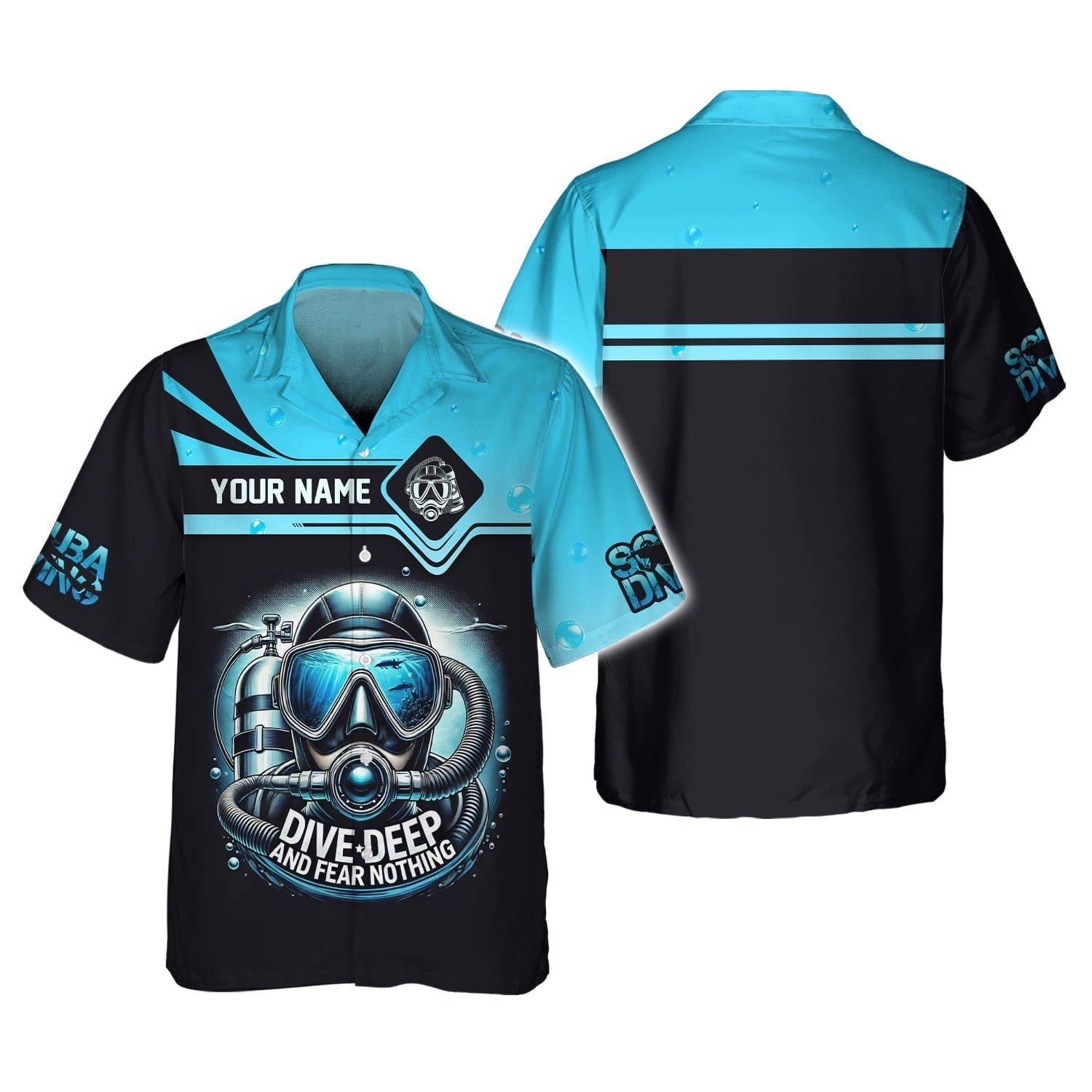 Scuba Diving Custom Name 3D Shirt Dive Deep And Fear Nothing Personalized Gift For Diver Lovers, All Over Printed