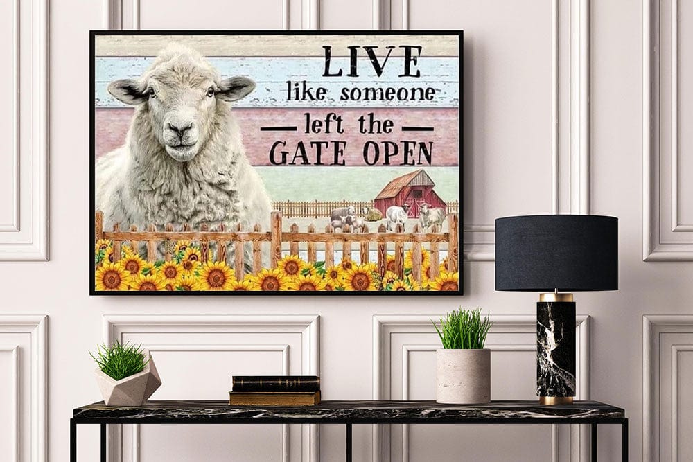 Live Like Someone Left The Gate Open Funny Sheep Farm Poster, Canvas