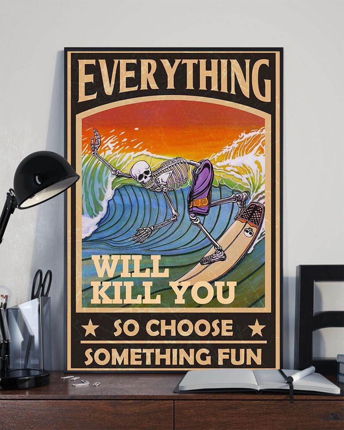Skeleton Surfing Everything Will Kill You So Choose Something Fun Poster, Canvas
