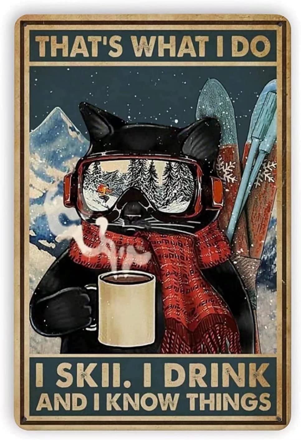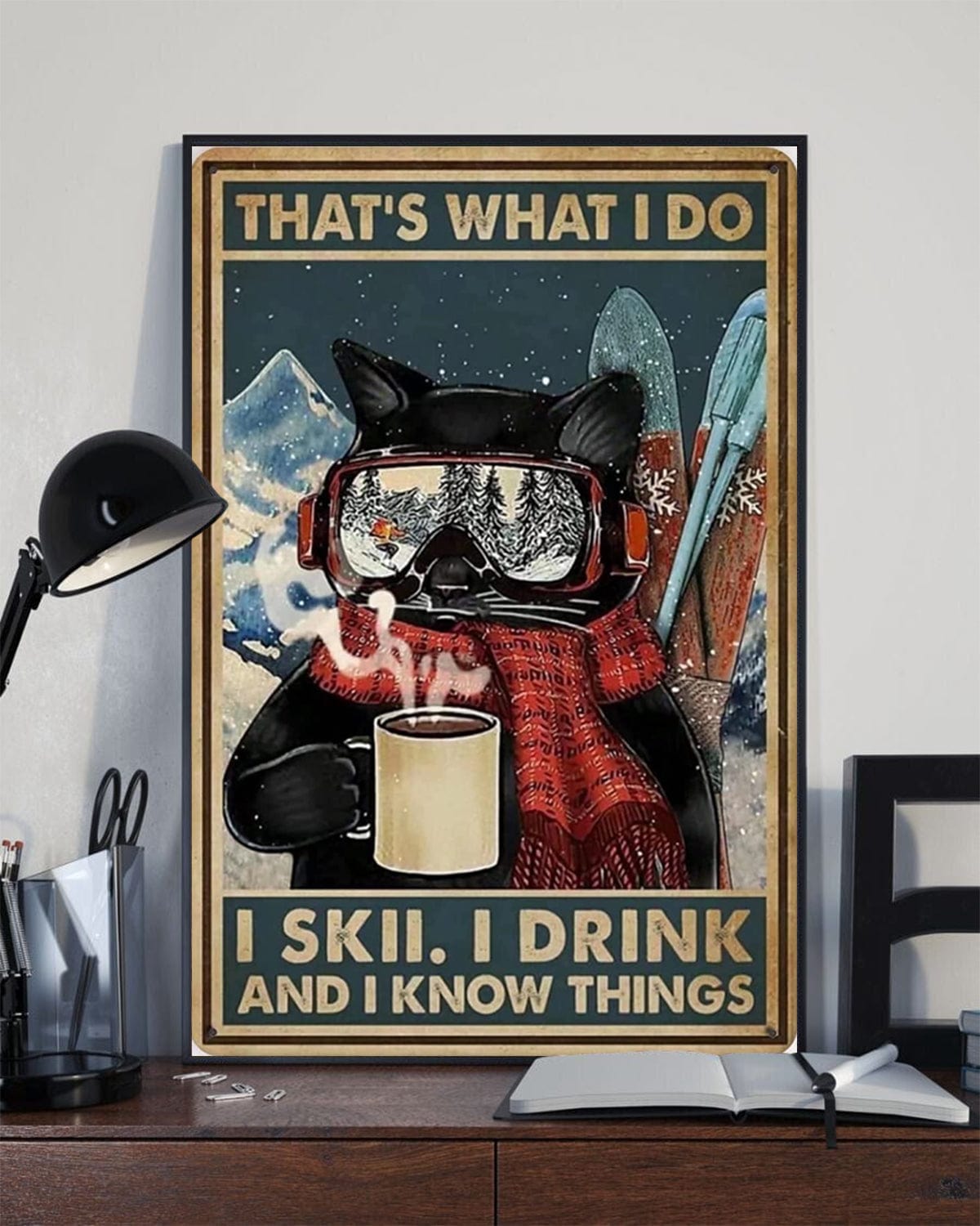 That’s What I Do I Ski I Dring And I Know Things Cat Drinking Coffee And Skiing Poster, Canvas