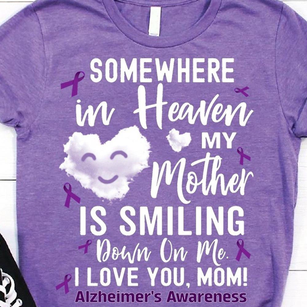 Somewhere In Heaven My Mother Is Smiling Down On Me, I Miss You Mom, Alzheimer's Awareness Shirt