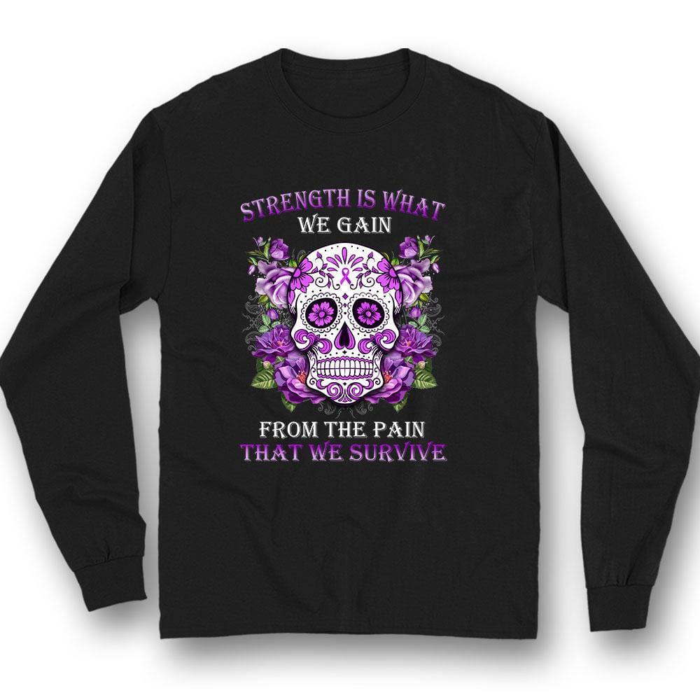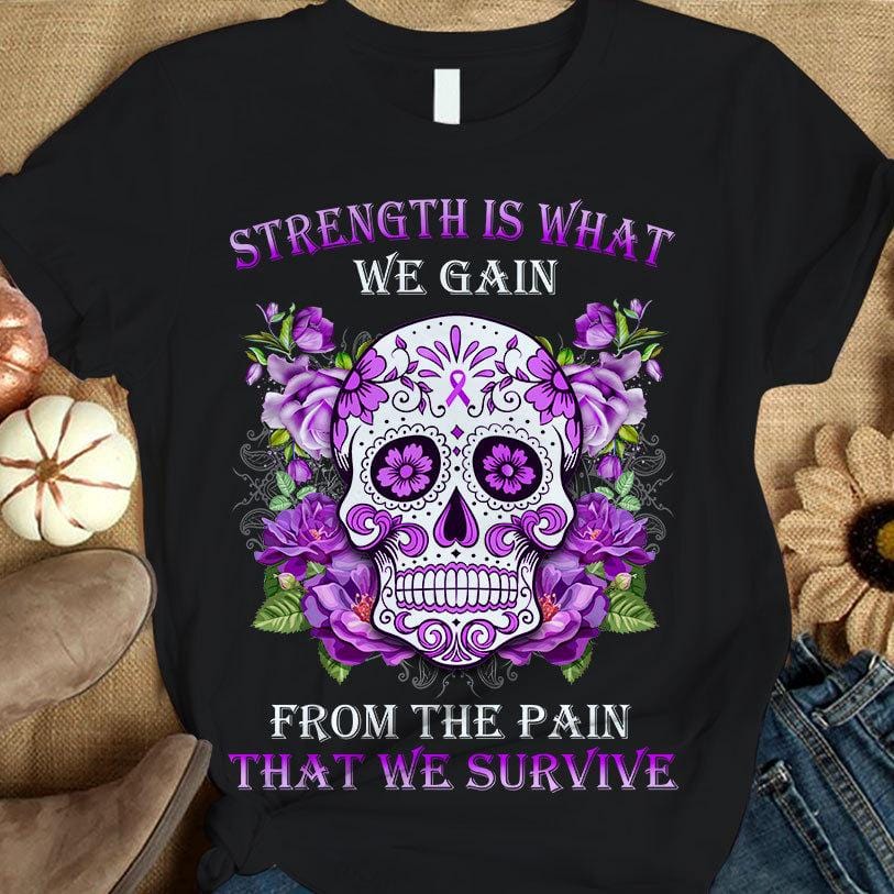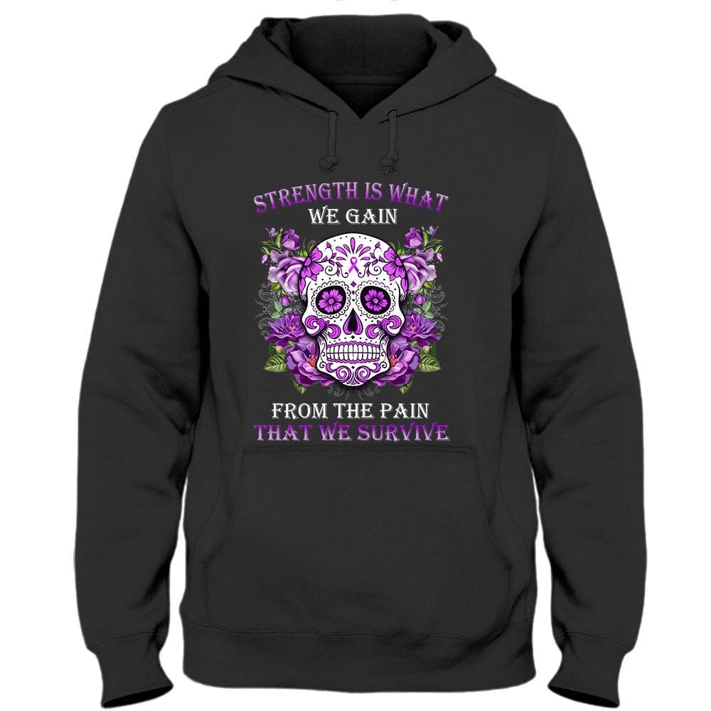 Strength Is What We Gain Survive, Fibromyalgia Awareness Shirt, Skull Flower