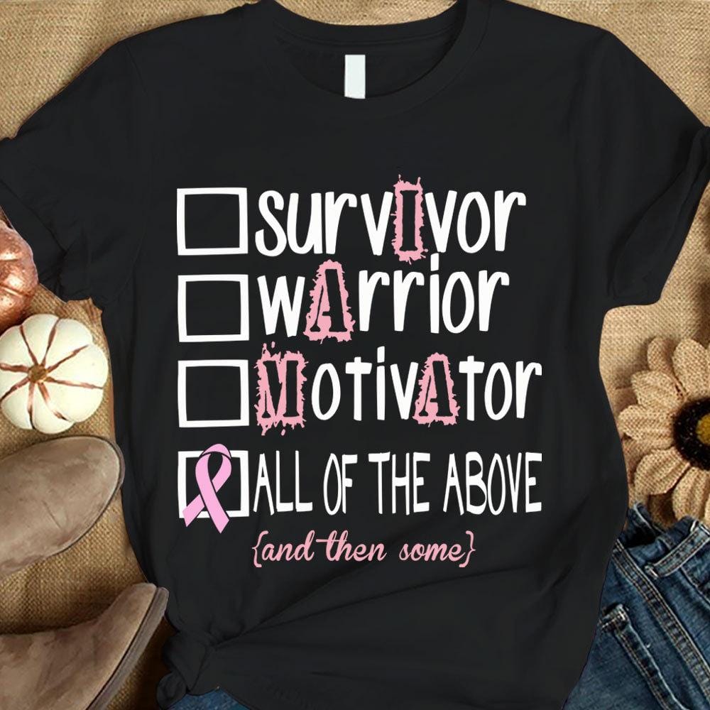 Survivor Warrior Motivator, Breast Cancer Sayings Awareness Shirt, Pink Ribbon