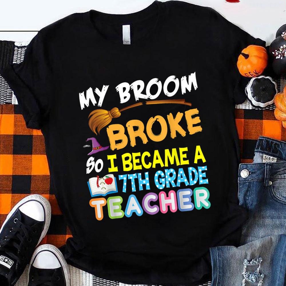 Teacher Halloween Shirts, My Broom Broke I Became 7th Grade Teacher, Intermediate Teacher Shirts