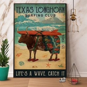 Texas Longhorn Surfing Club Funny Cows Poster, Canvas