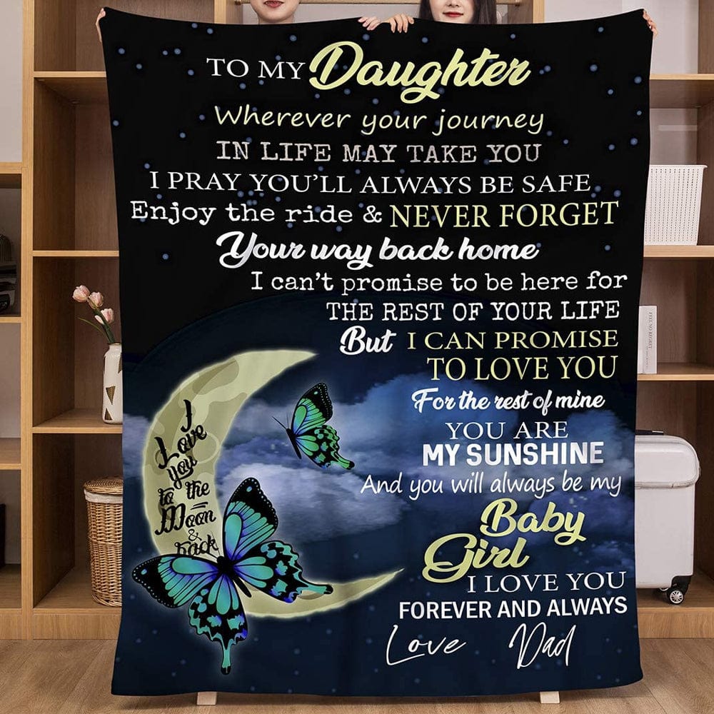 To My Daughter Love From Dad Butterfly & Moon Fleece & Sherpa Blanket
