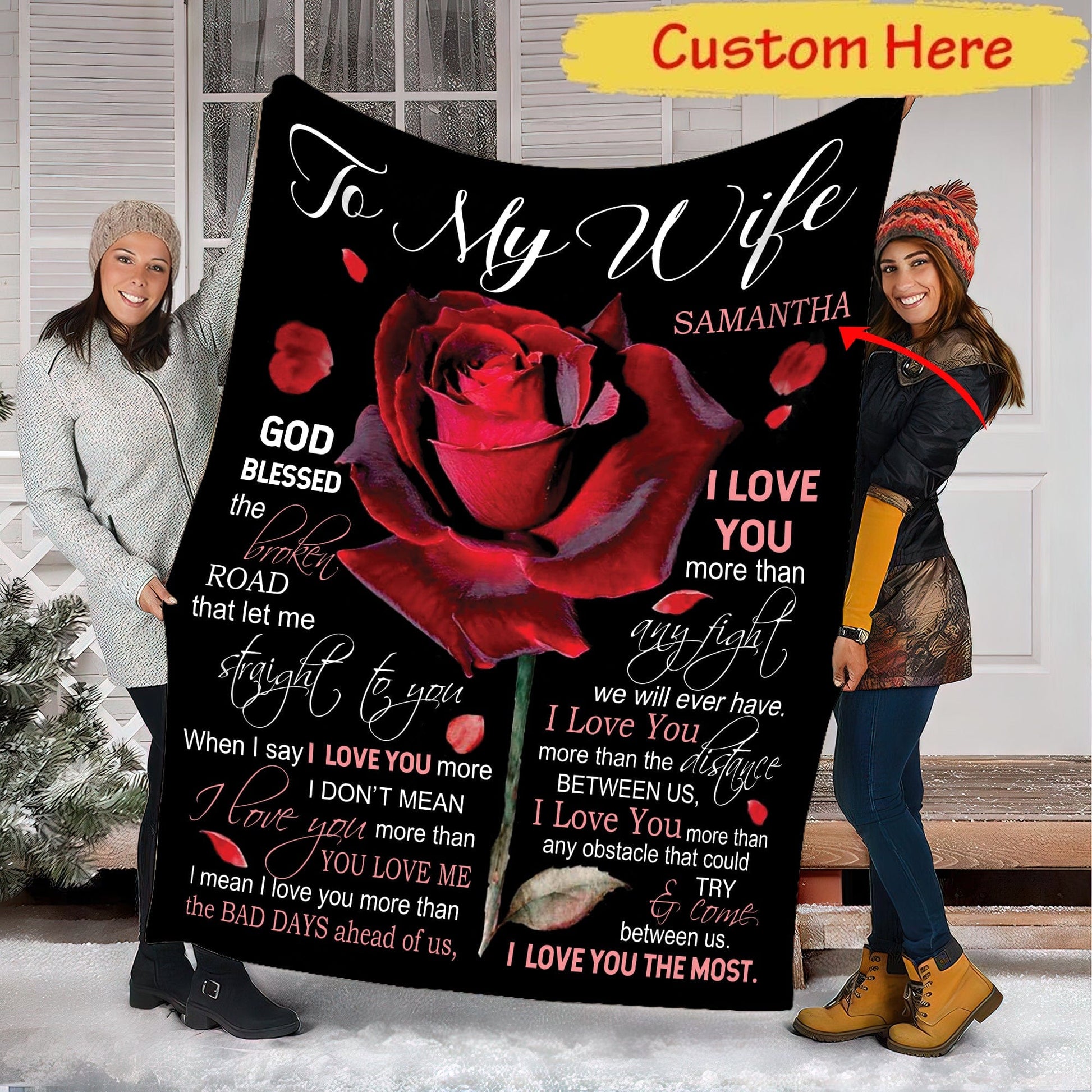 To My Wife Personalized Rose Valentine Blanket Fleece & Sherpa