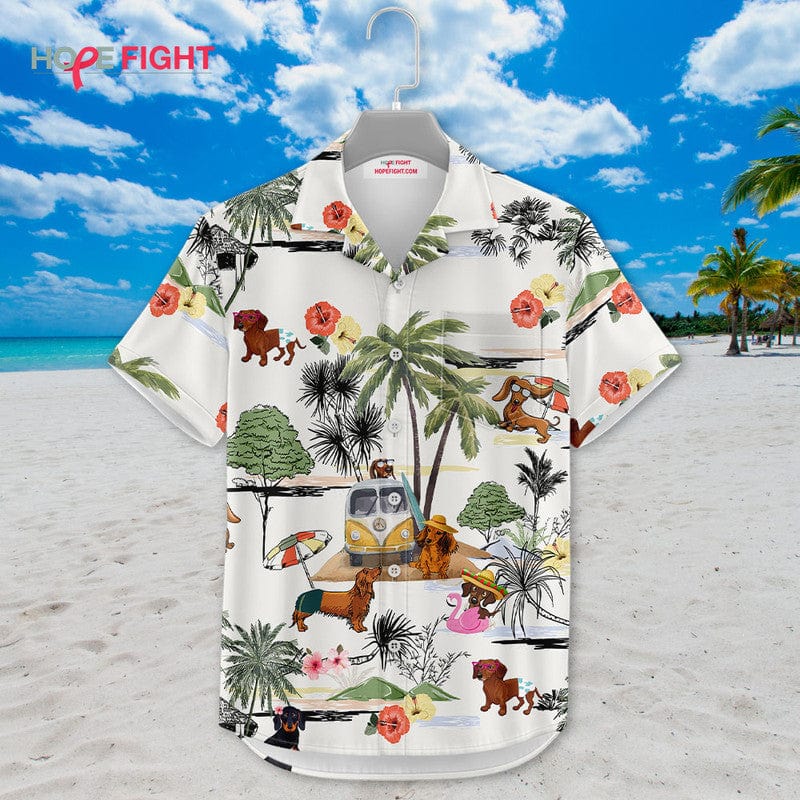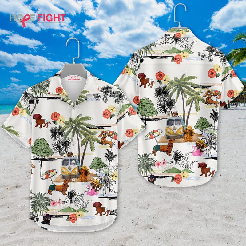 Tropical Dachshund Hawaiian Shirt - Fun Wiener Dog Beach Outfit