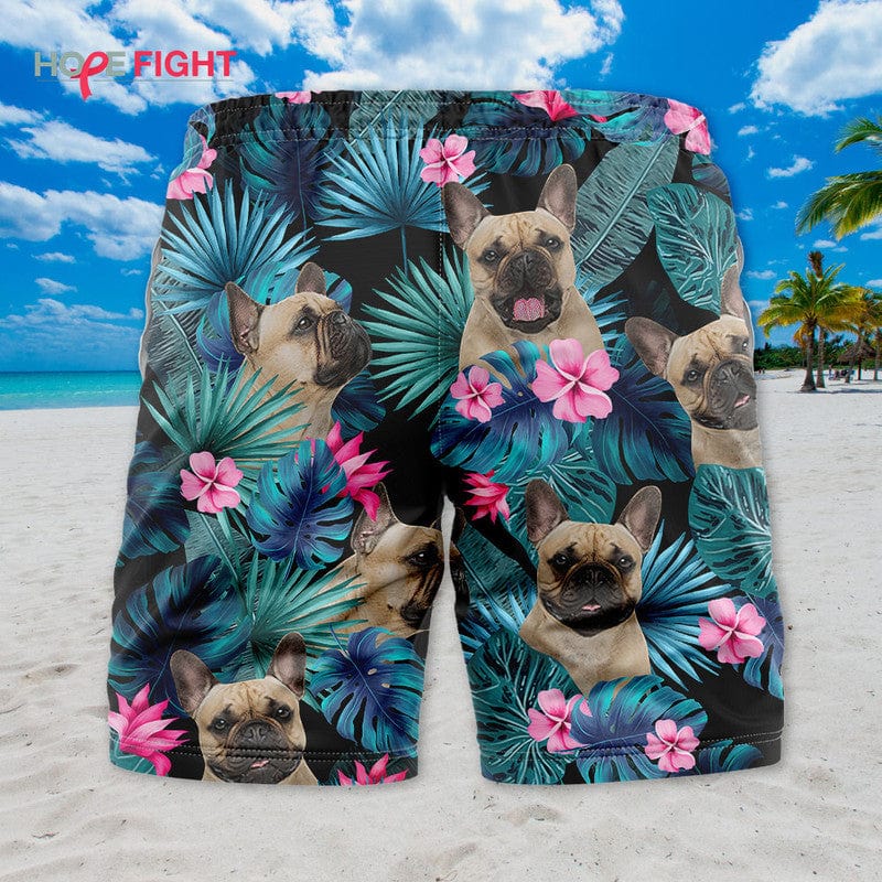Tropical French Bulldog Swim Trunks, Fun Frenchie Lovers Outfit