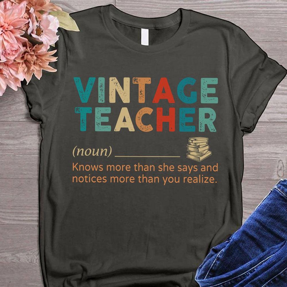 Vintage Teacher T Shirt, Noun Knows More Than She Says, Teacher Shirts