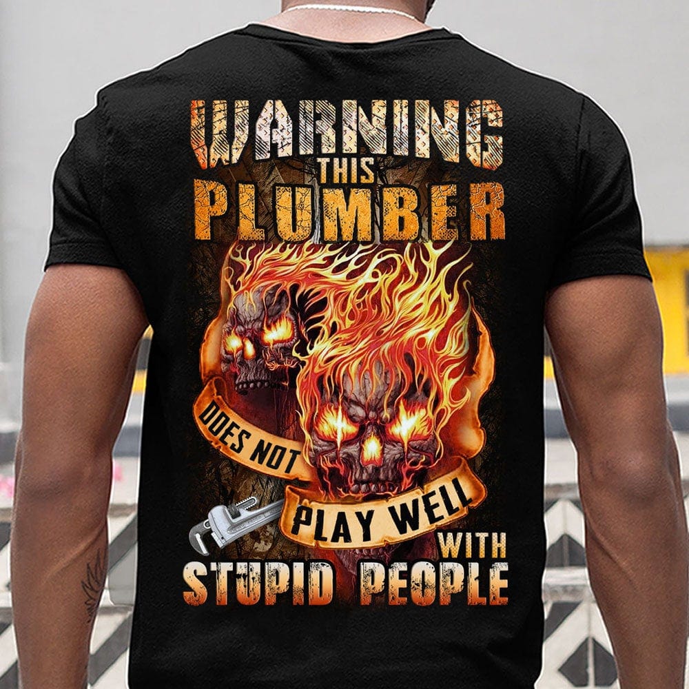 Warning This Plumber Does Not Play Well With Stupid People Shirts