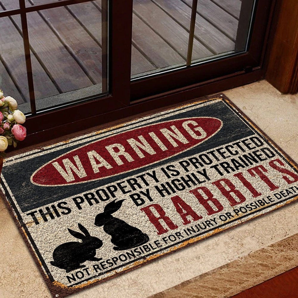 Warning This Property Is Protected By Highly Trained Rabbits Bunny Doormat
