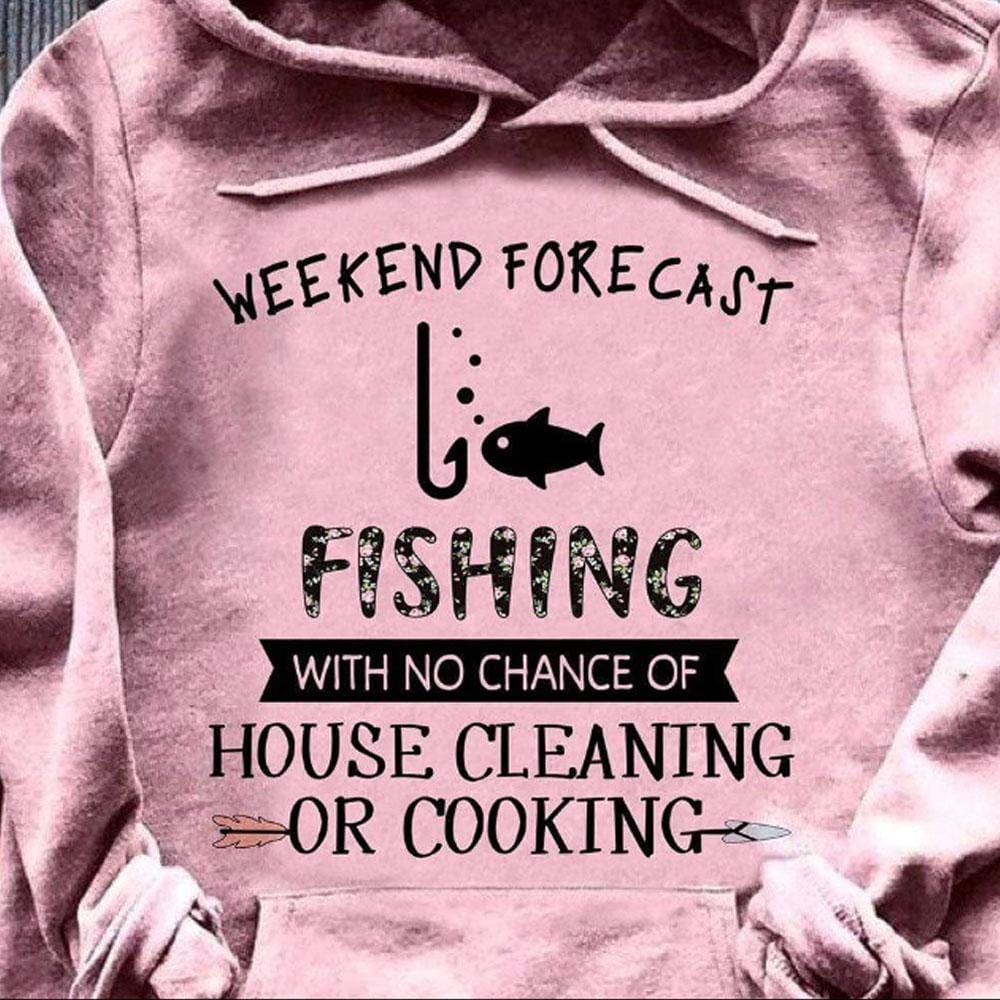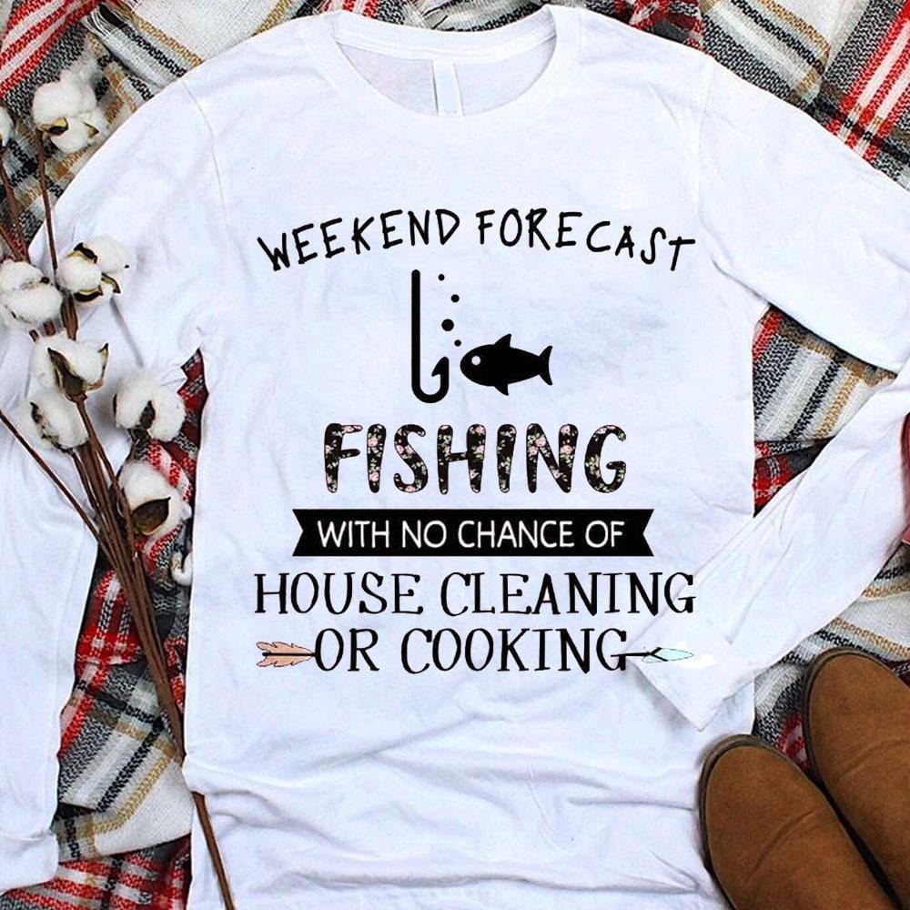 Weekend Forecast With No Chance Of House Cleaning Cooking Funny Fishing Shirts