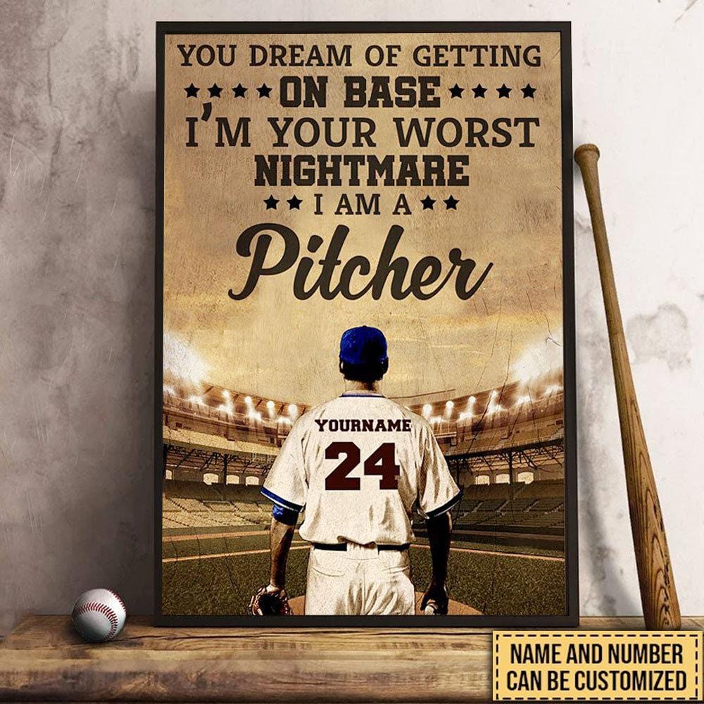 You Dream Of Getting On Base, I'm A Pitcher Personalized Baseball Poster, Canvas