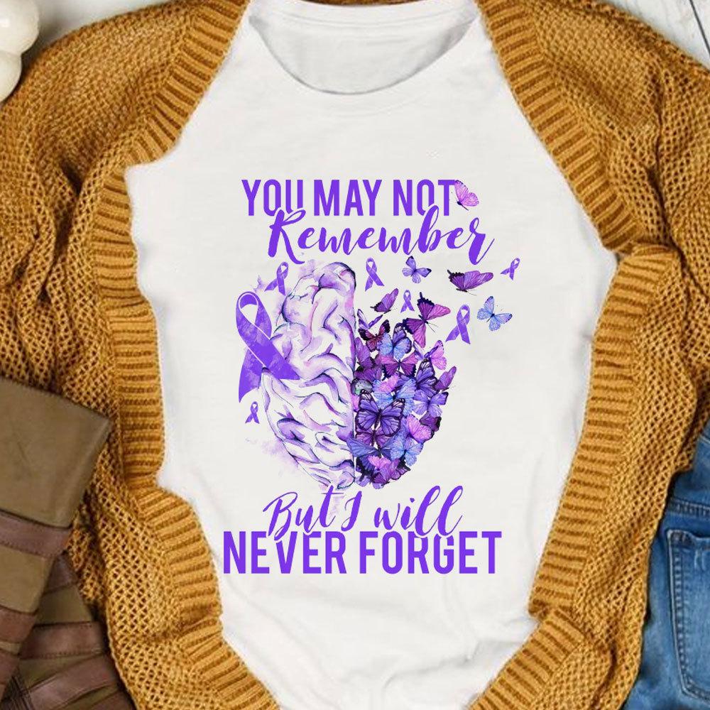 You May Not Remember But I Will Never Forget With Butterfly Brain, Alzheimer's Awareness Shirt